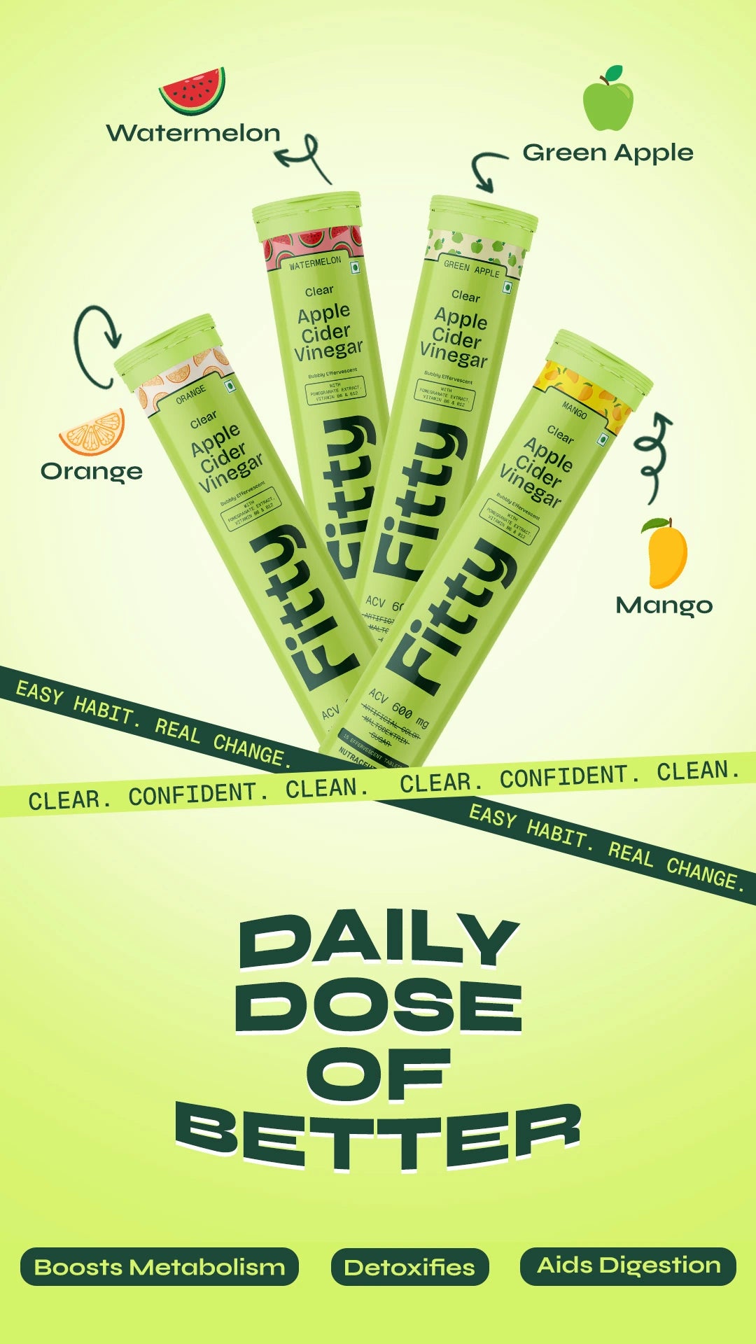 Fitty ACV gives you a clean 600mg hit of raw, unfiltered apple power (with “the mother,” aka the real MVP). It’s your everyday buddy for burning fat, taming cravings, boosting metabolism, and keeping digestion smooth.