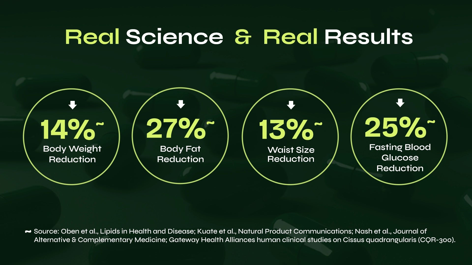 • CQR-300™ (Cissus quadrangularis): Ayurvedic herb backed by modern research for healthy metabolism and body composition.